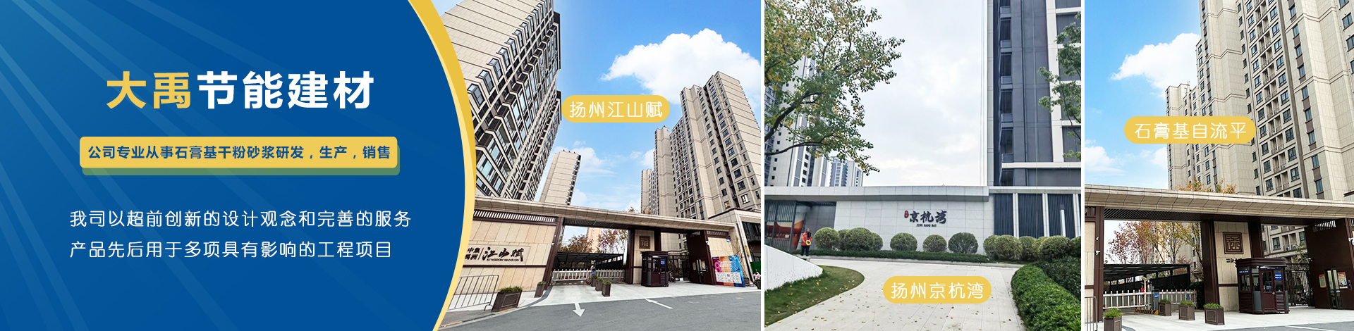 揚州市大禹節(jié)能建材科技有限公司成立于2005年9月,位于聯合國宜居城市---江蘇省揚州市,地處江都經濟開發(fā)區,與揚、鎮、泰三市接壤,交通十分便捷。公司是專業從事石膏基干粉砂漿研發(fā),生產,銷售一體化的綜合性科技型企業,為國家標準GB/T2862-2012《抹灰石膏》的參編單位。 公司擁有國內一流的特種砂漿生產線,并配有各種先進的檢測儀器,年生產能力可達10萬噸。各崗位管理及技術人員齊備,對產品···